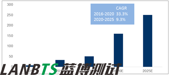 2015 年中國成為最大新能源汽車市場,2015-2025E 新能源汽車銷量CAGR 21%。中國新能源汽車市場呈現(xiàn)爆發(fā)式增長,2015 年,我國的新能源汽車銷量達(dá)33.1 萬輛,同比增長3.4 倍,全球市場份額占比從2014 年的21.1%驟升至60.3%9,超過美國成為全球最大新能源汽車銷售市場。國內(nèi)新能源汽車市場規(guī)模將維持高速增長,有望到2025 年達(dá)到280 萬輛,CAGR 21%,占全球市場份額41.7%。
