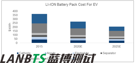 2015-2025,電動(dòng)汽車鋰電池Pack 單位成本將下降44